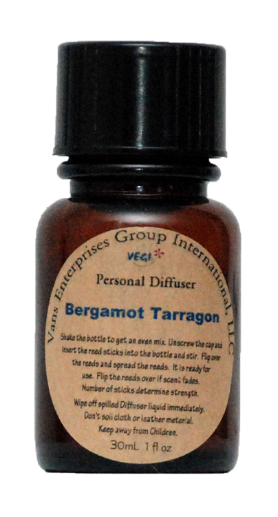 The 1 oz Bergamot Tarragon Personal Reeds Diffuser is a small package for personal use. It is packaged in an amber glass container. It is the same diffuser oil used to produce our 3 oz and 5 oz packages. With shorter reeds, it populates fragrance in a more confined area. This product is great for office use, or carry it while traveling to refresh air in a motel or hotel. It is also a great stocking stuffer during the holiday season. Use it for low-cost party gift exchange. Use it as wedding favors. The small Personal Diffuser will allow you to change fragrance in a much shorter time frame so that you can try out many of our great fragrances. The contents will last about 2-3 months depending on your environment. Each Personal Diffuser comes with 10 reed sticks. Start with 4 sticks and if you prefer, you can use all 10 reeds to obtain more scent throwing power. It is also possible for use on an oil burner. For such application, it is more economical to purchase our refill package.